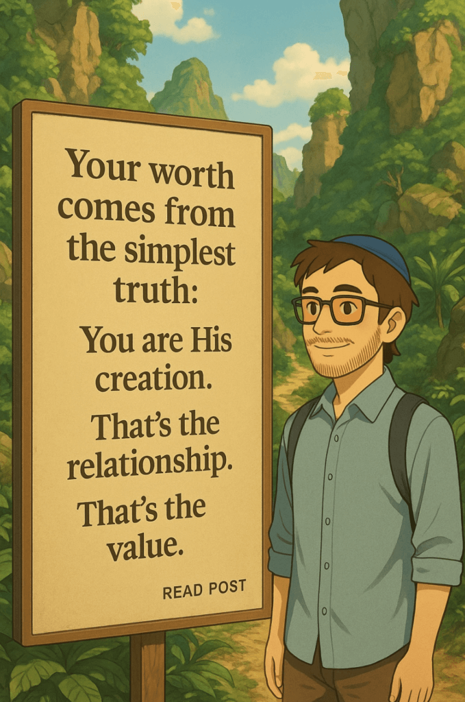 You are His creation. That’s the relationship. That’s the value. You stand on the fact that G-d created you, which means your value is built into your existence before you do anything, earn anything, or prove anything.