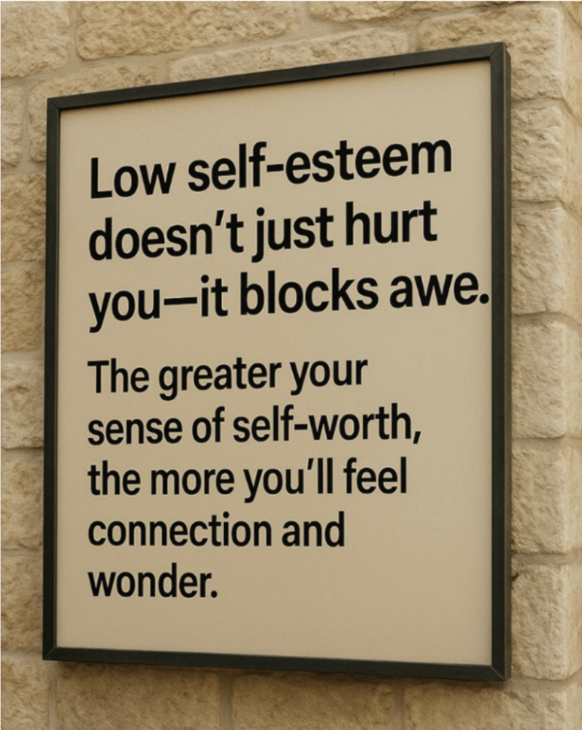 Low self esteem doesn’t just hurt you – it blocks awe. the greater your sense of self-worth, the more you’ll feel connection and wonder.