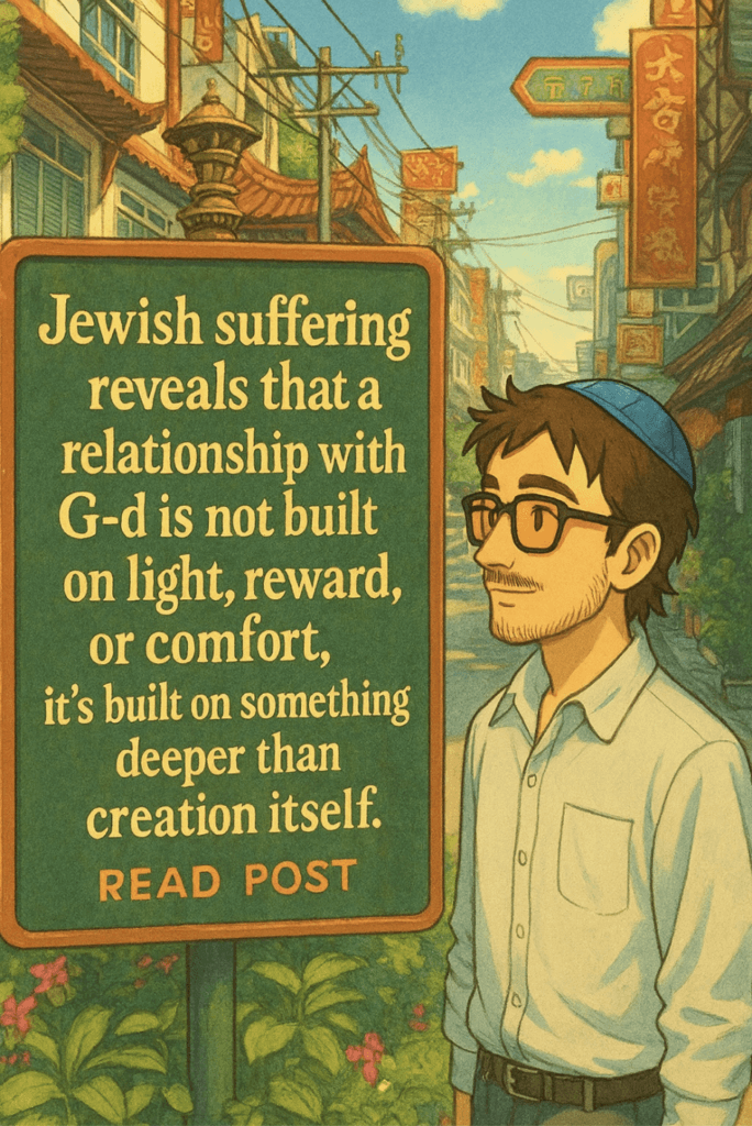 Jewish suffering reveals G-d’s Essence, because only unconditional love survives that kind of darkness.