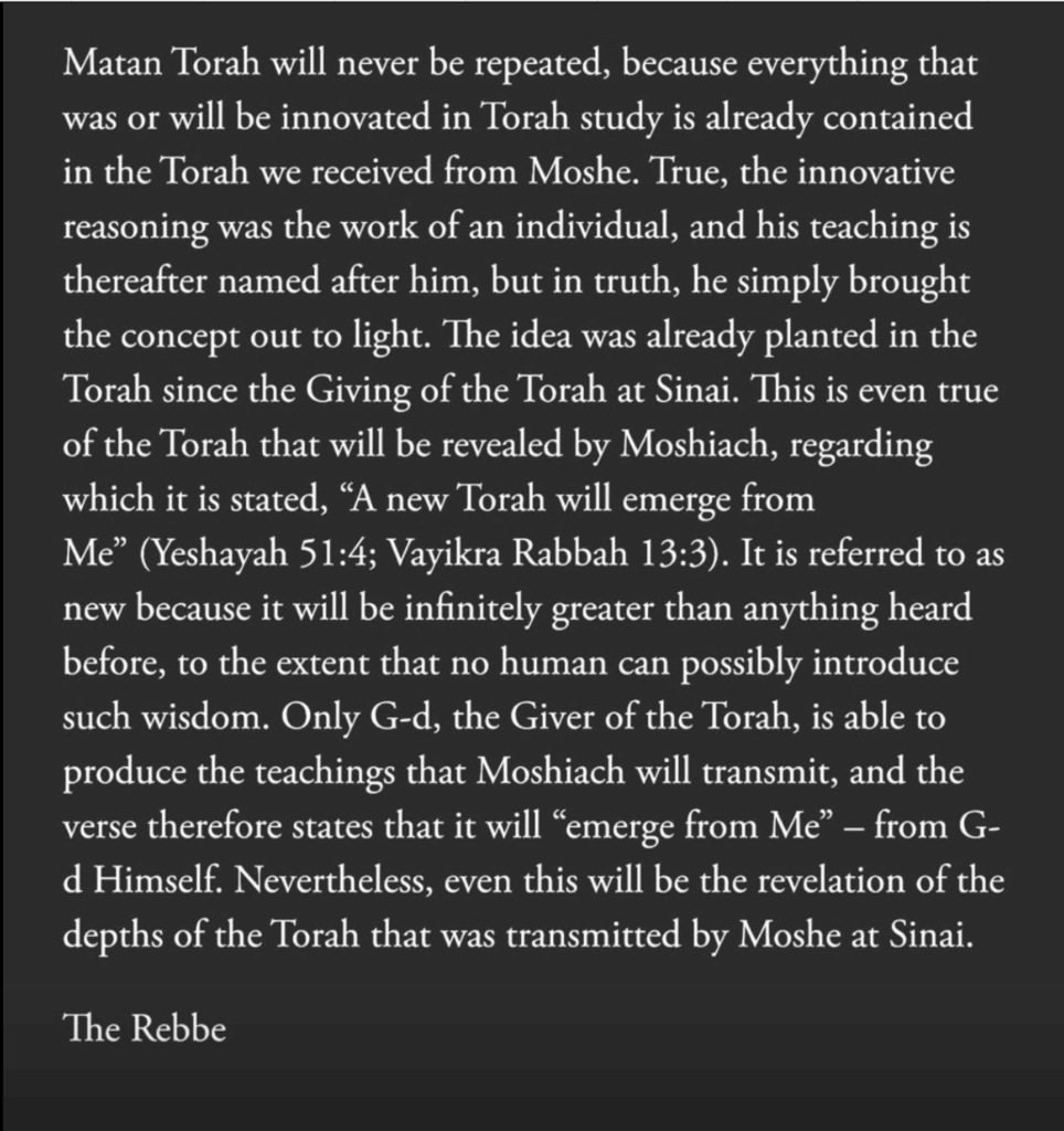 But because the work is different now. Nothing new is being added. Every idea. Every insight. Even the wisdom of the future. It was all planted at Sinai.