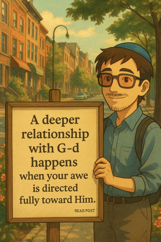 When your awe turns only toward G-d, your body begins to feel the relationship more strongly, that quiet trembling of being seen by the Infinite (the kind of awe that can even give you goosebumps), the meeting point between form and formlessness.